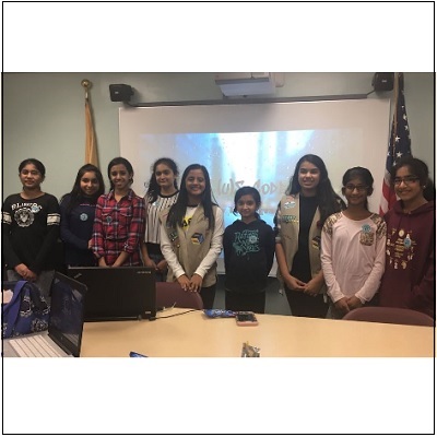 Our very first project was a teaching project, CusCode. It was done as part of achieving a girl scout silver award. Elementary and middle school students were taught the basics of coding using scratch and code.org . Please visit https://cuscode.weebly.com/ for more information.