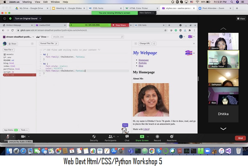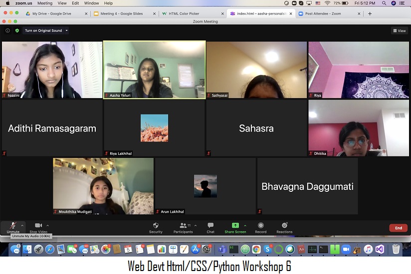 We plan to mobilize the teaching of Programming Languages like C++, Java and Python, front end web development skills using HTML, CSS & Java scripts and work on helping teach the basic concepts involved with understanding Blockchain, AI, and Machine Learning through the Girl Scout Gold award project 'Together We Code, Together we create' . Here are some links to our workshop slides developed for our online Web Development curriculum(basically HTML, CSS and Python workshops).
